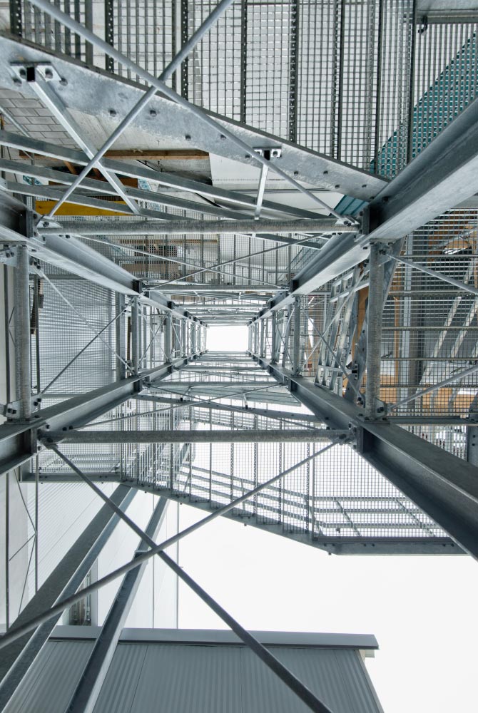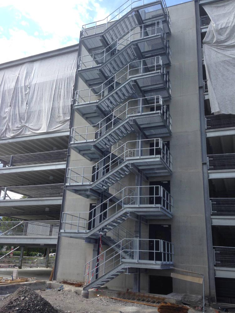 Stahlbau mit Fluchttreppenturm Südwest inkl. Geländer.