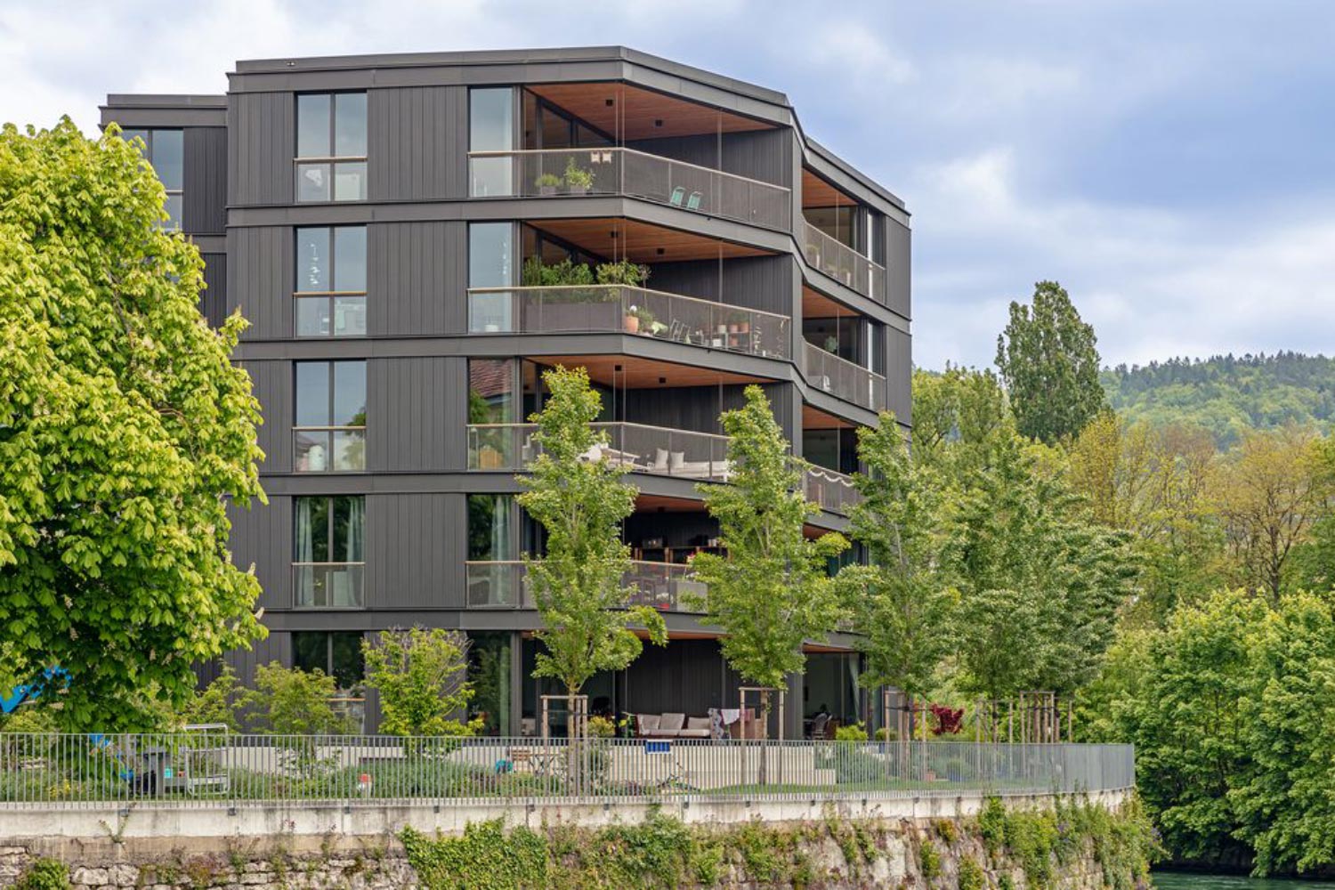 Das Haus mit 29 zum Fluss hin ausgerichteten Wohnungen überzeugt durch hohe Räume, durchdachte Grundrisse und einen hohen Ausbaustandard. Grosszügig angelegte Aussenflächen vervollständigen die Anforderungen an komfortables Wohnen. Das Gebäude wurde nach Minergie-Standard zertifiziert.