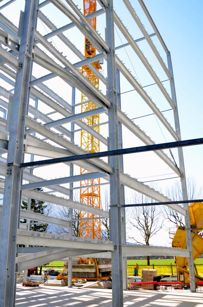 Stahlkonstruktion - Hauptstützen bestehend aus HEA 240. Gesamthöhe: 13,35m