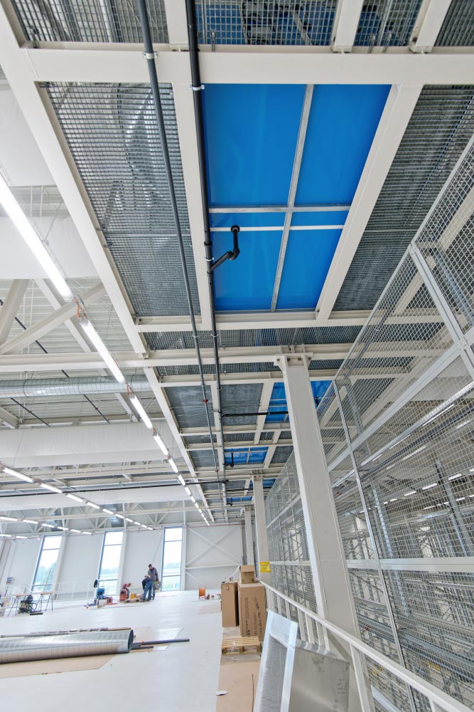 Baufeld C - Herstellen von Industriedecken aus Gitterrosten im Innenbereich und seitlich bei der Tiefgaragenabfahrt. Stockwerke EG bis 2. OG – Gesamt 3.500,- m²